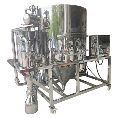 2、采用并流型噴霧干燥,干燥過程中,液體的溫度不高,產品質量好。在噴霧干燥室內,液體與熱風同方向流動,雖然熱風的溫度較高,但由于熱風進入干燥室內立即與噴霧液體接觸,室內溫度急降,不致使干燥物料受熱過度,適宜于熱敏性物料的干燥,排出產品的溫度取決排風溫度,且低于排風溫度。